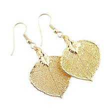 A pair of 24k gold dipped leaf dangle earrings. These earrings make for a unique gift as each pair is unique as they are found in nature, so no two are alike. Makes for a perfect gift for any woman and for any occasion including birthday, anniversary, and bridal.Feature