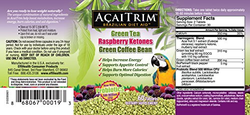 AcaiTrim Weight Loss Supplement-Green Tea, Green Coffee Bean, Raspberry Ketones, Acai, Plus Probiotics - 60 Count