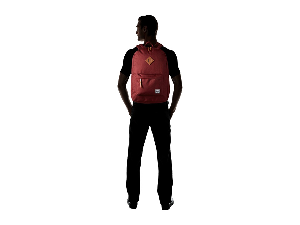 Description * Limited lifetime warranty. * Do you know your roots? The Heritage from Herschel Supply Co. certainly does. With a signature shape and feel, this sleek backpack will help define your style for years to come. * Spacious main compartment can hold books, clothes, or other daily essentials. * Interior sleeve pocket can hold up to a 15' laptop. * Additional front compartment with a key clip. * Internal media pocket for added storage options. * Leather diamond detail accents the front of bag. * Herschel Suppler Co. tag in bottom corner of bag. * Eco-friendly reinforced bottom creates a sharp contrast. * Padded and adjustable straps for a custom fit. * Exterior: 100% polyester.Lining: 100% nylon. * Imported. Measurements: * Bottom Width: 12 1frasl;2 in * Middle Width: 12 in * Top Width: 11 in * Depth: 5 1frasl;4 in * Height: 18 1frasl;2 in * Strap Length: 34 in * Strap Drop: 15 1frasl;2 in * Handle Length: 6 1frasl;4 in * Handle Drop: 2 1frasl;2 in * Weight: 1 lb 4 oz * This product may have a manufacturer's warranty. Please visit the manufacturer's website or contact us at warranty@support.zappos.com for full manufacturer warranty details. |