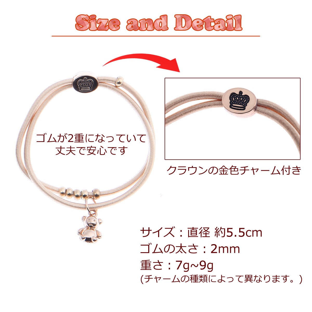 ◆ゴムの色は ブラック、ブラウン、ゴールドの3色。 ゴムは2重になっているので丈夫で安心。