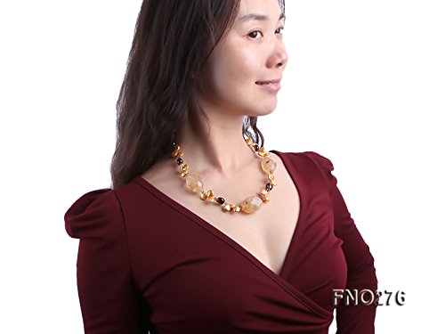 It is also dotted with some smoky quartz and yellow crystal. The pearls are of high luster and looks shiny.