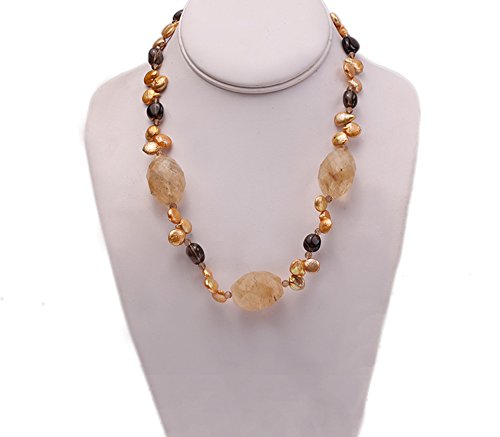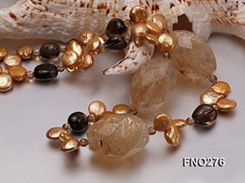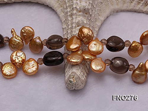 Description *This is a classic single-strand flat freshwater pearl necklace, made with 11x13mm golden coin-shaped pearls.