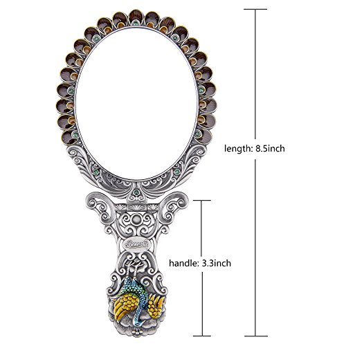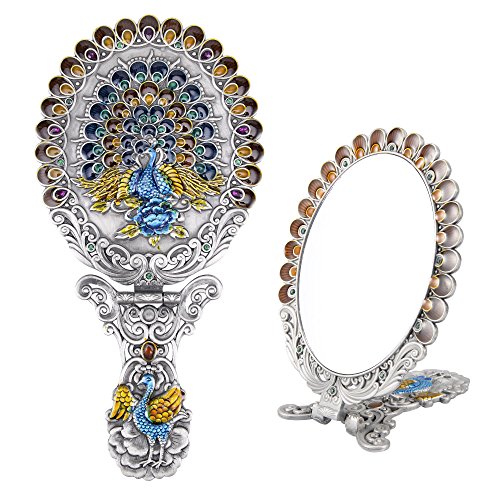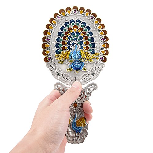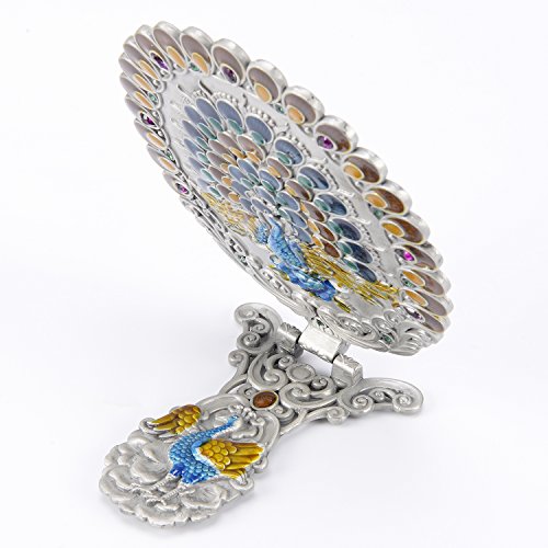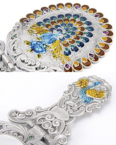 ITEM SPECIFICS -- Peacock shape princess style design. Vintage royal pattern. Attractive color matching. Superb craftsmanship. A great match to your cosmetics set. Hand-painted. On machine-made metal bases, craftsmen manually fill in colors. Great choice for makeup mirror which fully displays uniqueness and taste