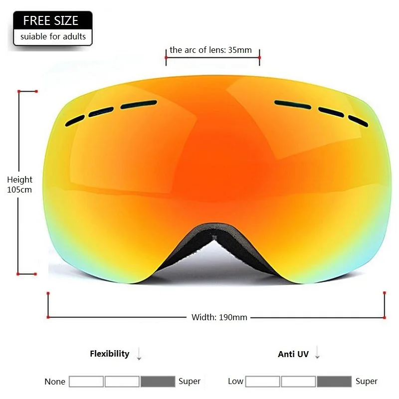 Item Name:Ski goggles double lens UV anti-fog big spherical skiing snowboarding