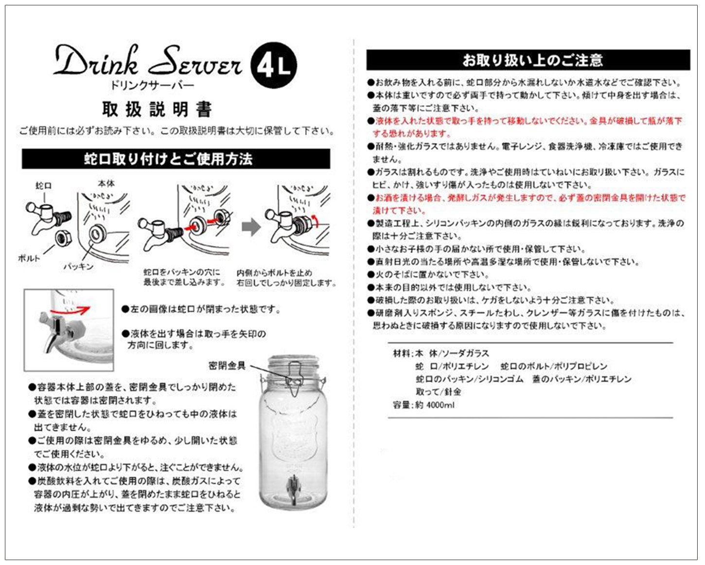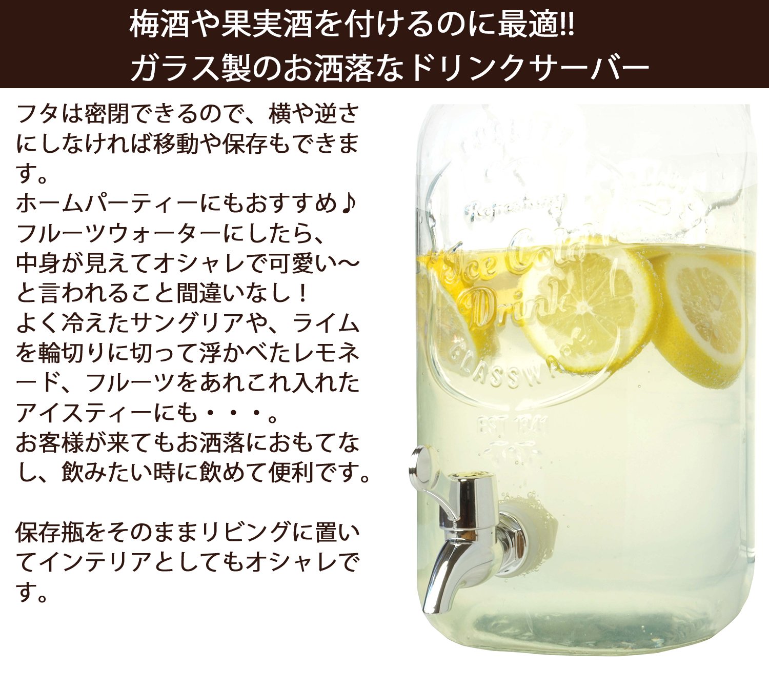 ● With a cock, you can make homemade fruit syrup and fruit wine with a dispenser, you can drink from the glass bottle just as much as you want for the cup and you can drink it