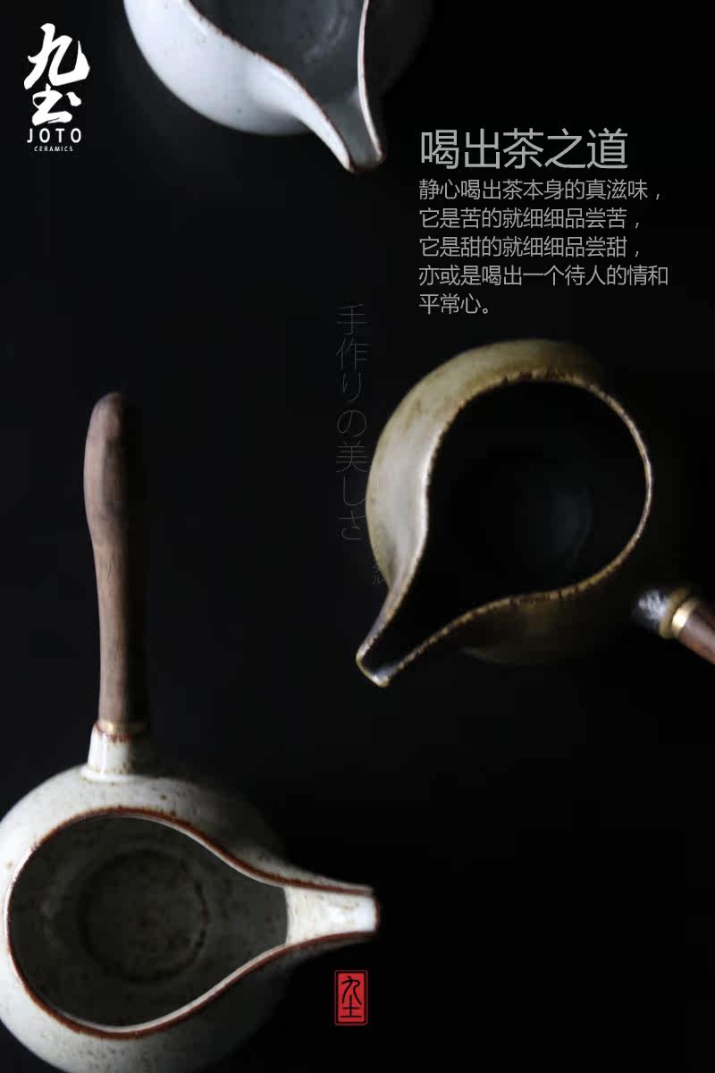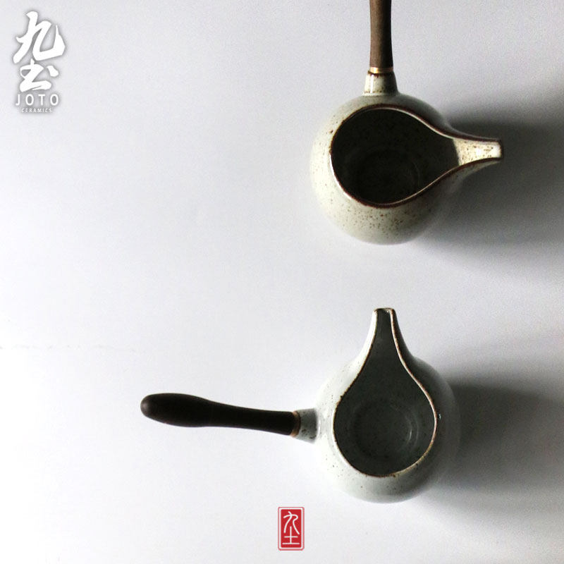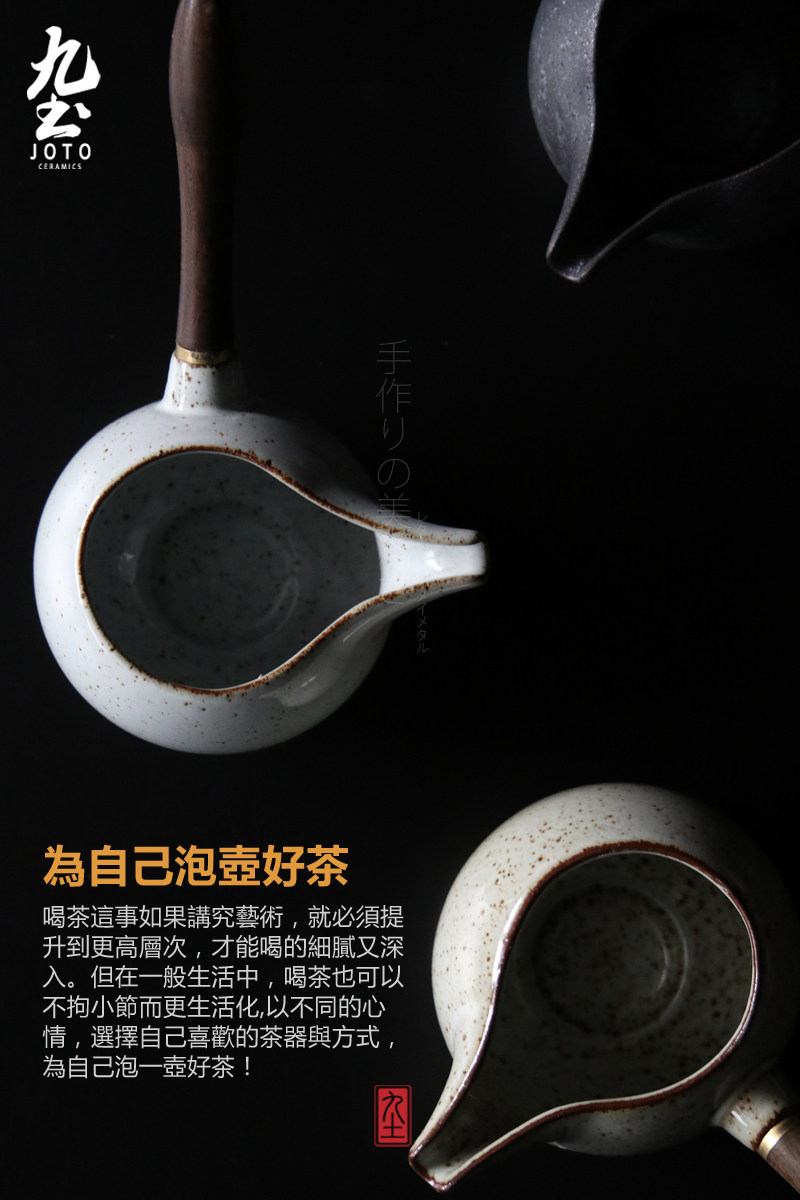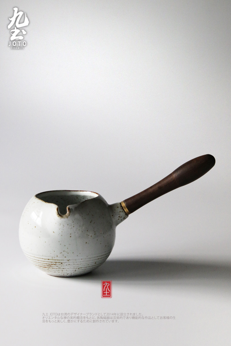木把公道杯功夫茶海日式木柄公道杯景德镇粗陶分茶器侧把公杯