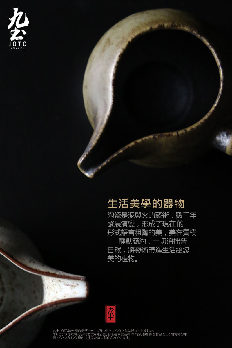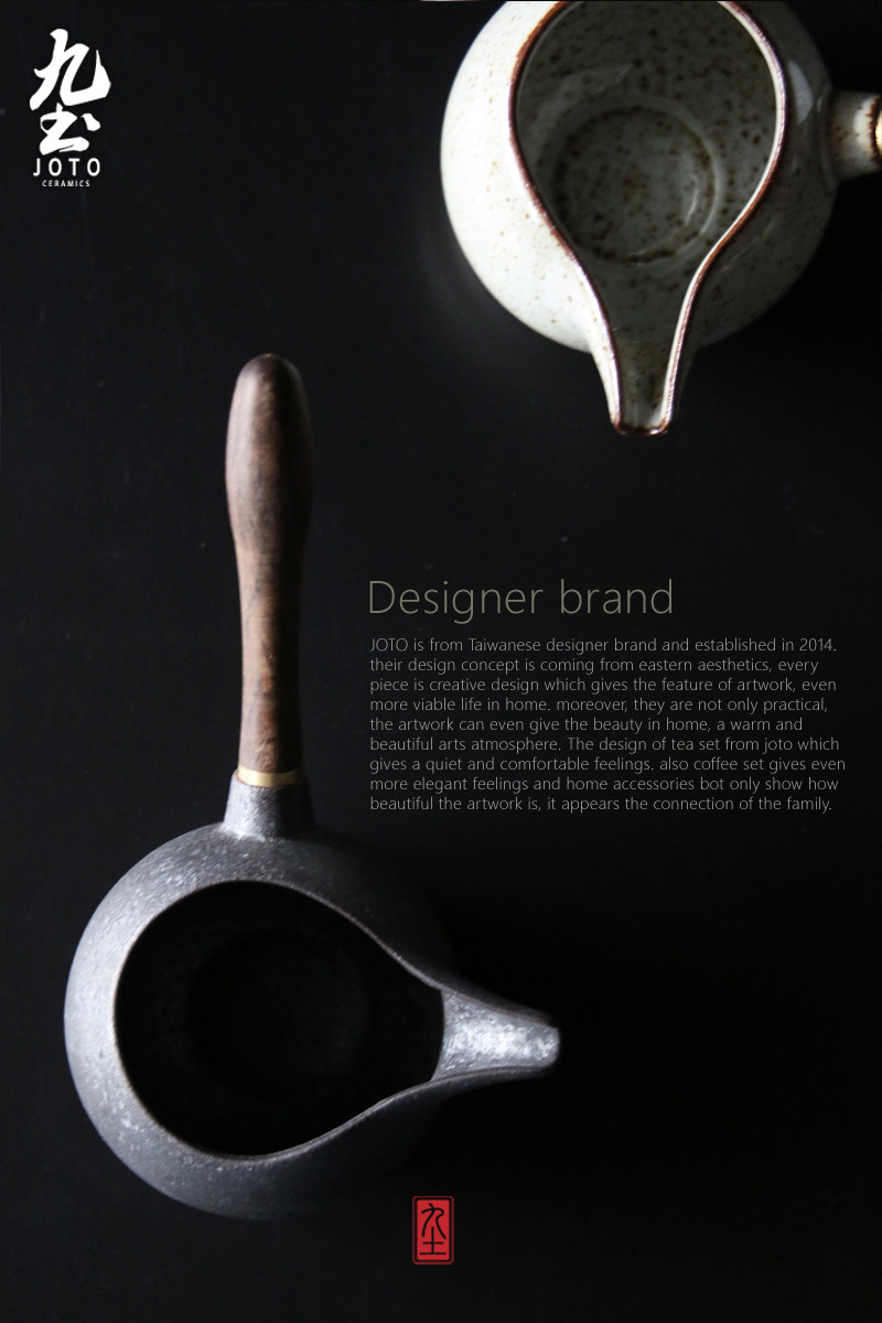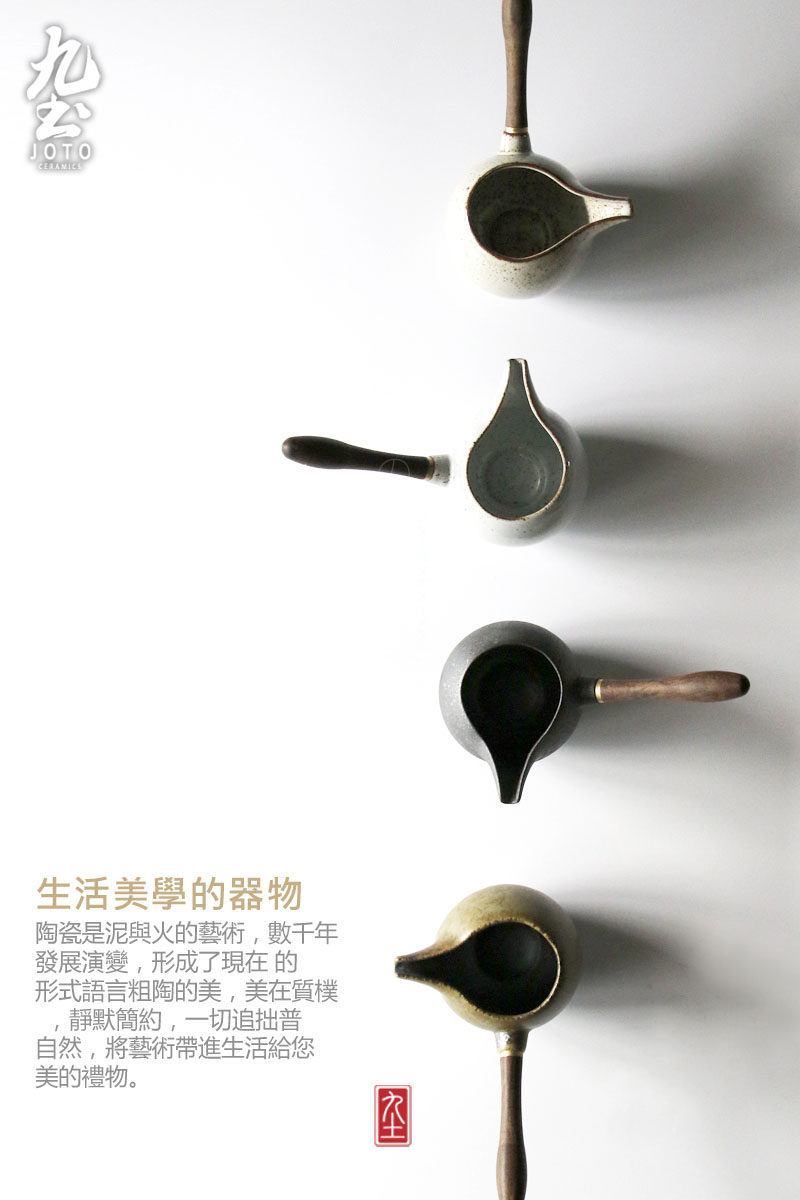 木把公道杯功夫茶海日式木柄公道杯景德镇粗陶分茶器侧把公杯