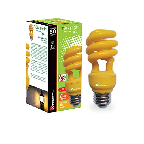Xtricity 13-Watt Compact Fluorescent T2 CFL Color Spiral Bug Light (60 Watt Incandescent Equivalent) E26 Medium Base - Energy Saver (Yellow, Pack of 2)