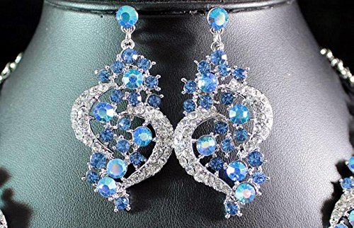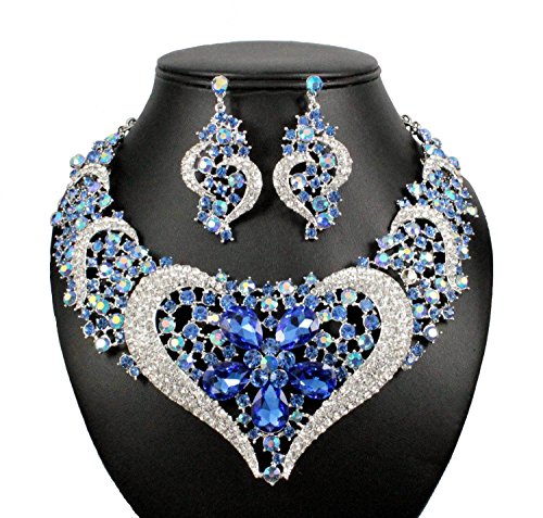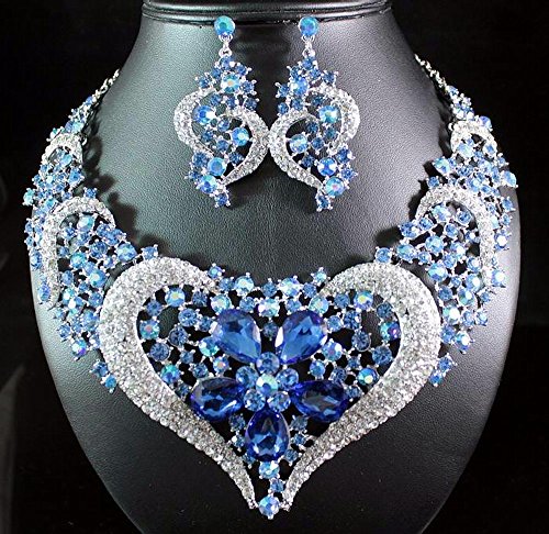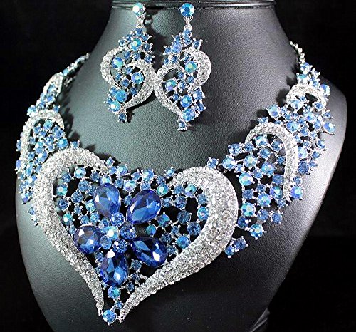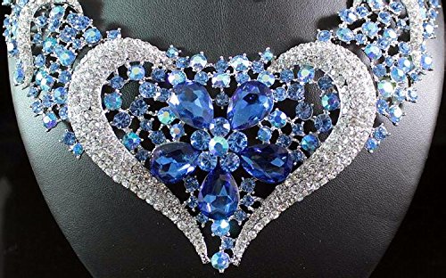 Simply stunning! You are large size heart necklace set. Sparkling first class Blue, AB Blue and Clear Genuine Austrian Rhinestones are set on beautiful shiny Silver Tone metal. This set shines a lot! It is perfect for any special occasions. Thanks for looking!Feature