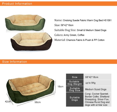 - Feature : Material: Suede & Plush & PP cotton / Color: Green / Lengtg:58cm Width:42cm Height:18cm / Weight:800g / Suitable For: Small & Medium-sized dogs and cats