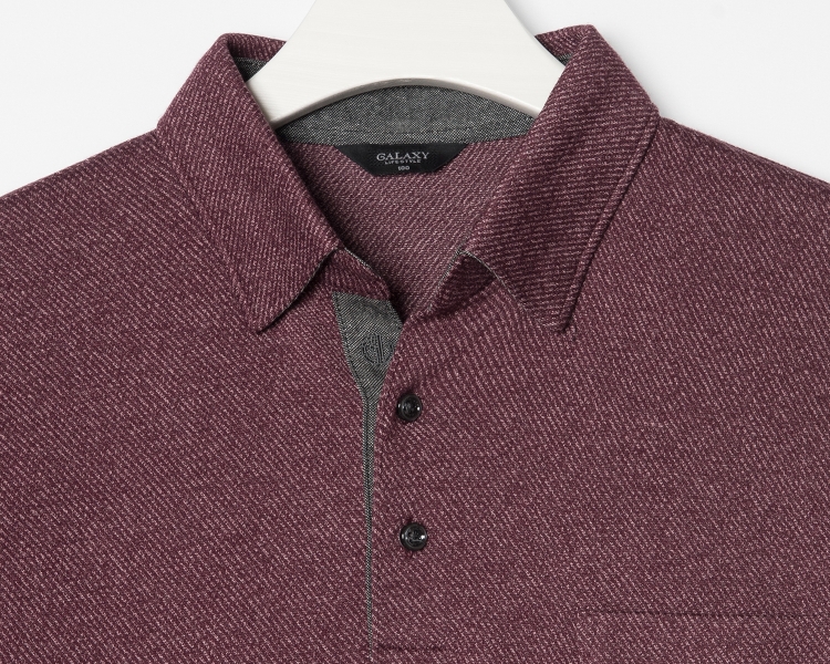 갤럭시 라이프 스타일의 버튼다운 칼라넥 티셔츠입니다.코튼 혼방 소재를 사용하여 가볍고 부드러운 착장감을 보여주는 제품입니다.은은한 컬러감으로 포인트를 주었으며 버튼다운형 칼라로 다양한 연출이 가능한 제품입니다.
