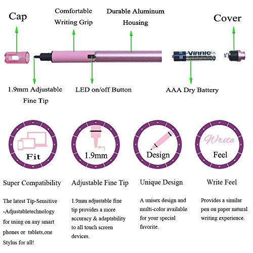 1.9mm Rotating Fine Tip: the latest Tip-Sensitive-Rotating technology provides a wide range signal for using on most smart phones,tablets to get a seamless pen on paper writing experience.