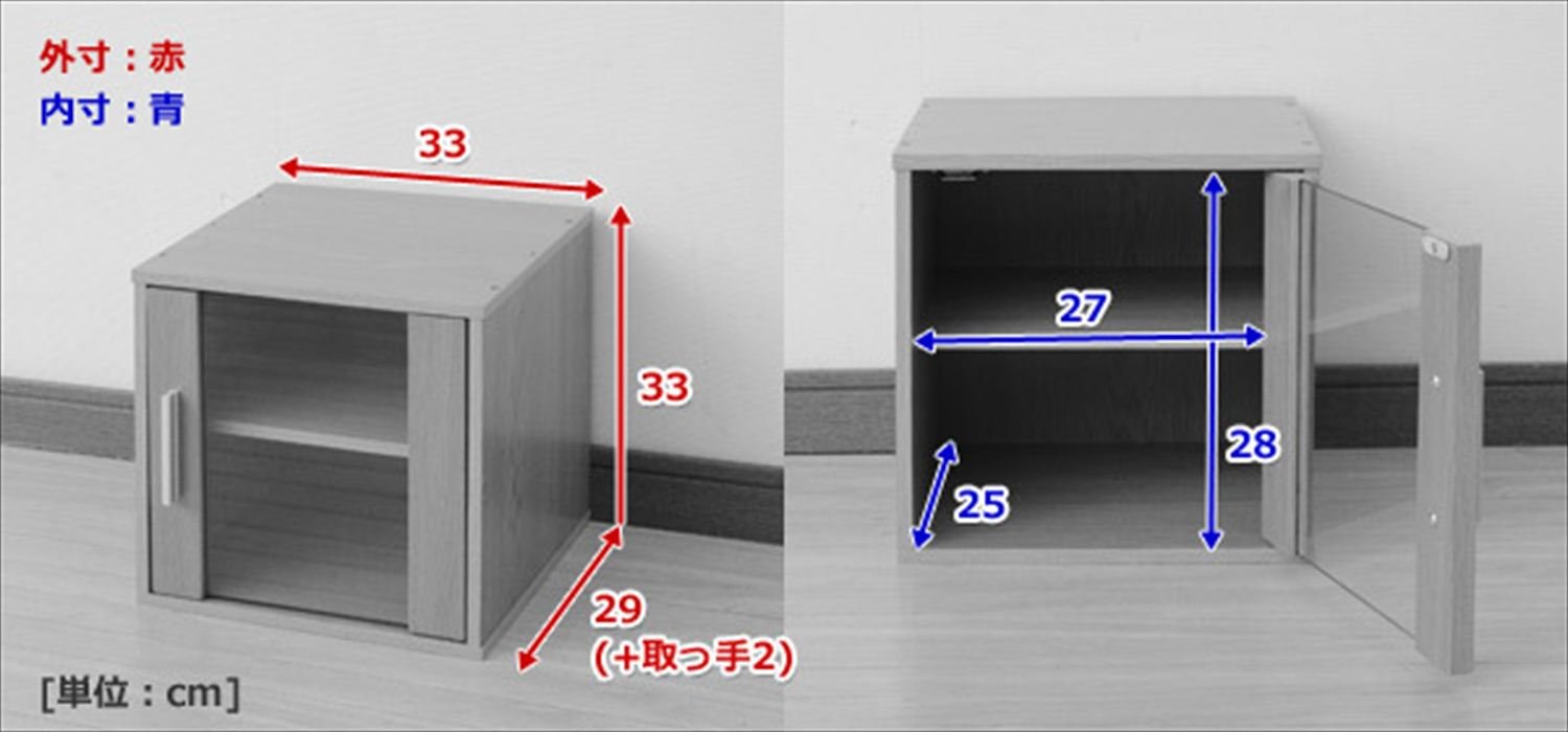 Inside dimensions of the door: width 27 Length 25 height 28 cm ● One movable shelf board (approximately 3 cm spacing, adjustable in 5 steps) ● Shelf top uppermost level inside height: 4.5 cm ● Shelf's lowest stage inner dimension