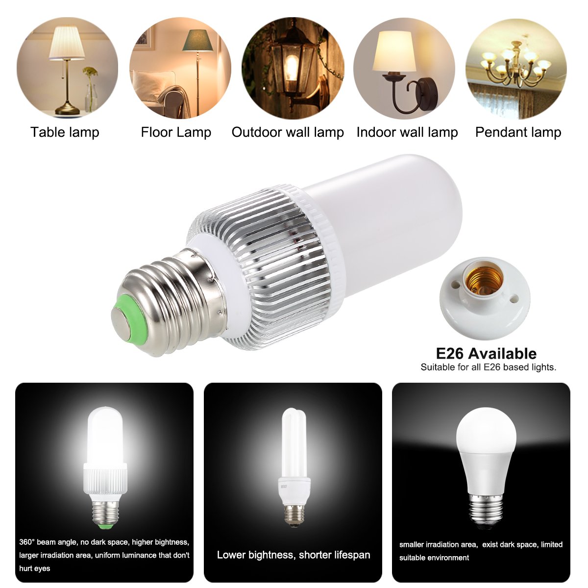 Eliminate electricity bill: Power consumption is equivalent to 9w, 75w incandescent light bulb, it saves about 80% energy and electricity cost compared with fluorescent lamp.