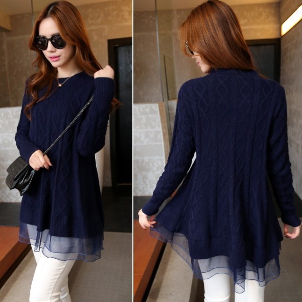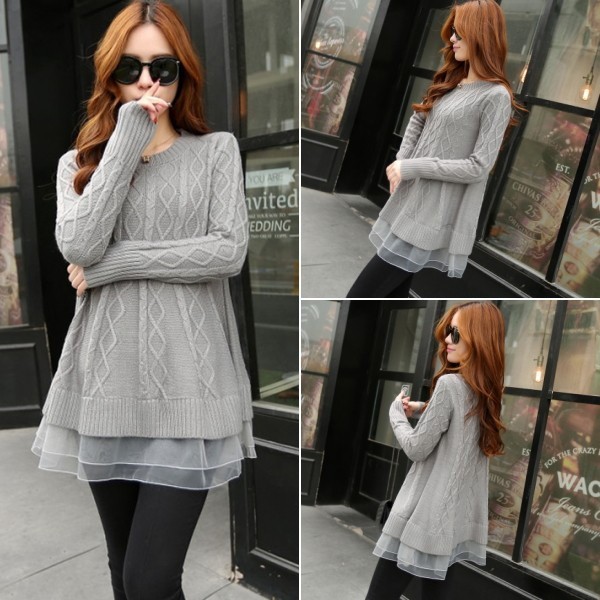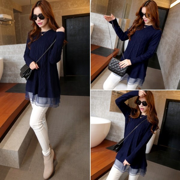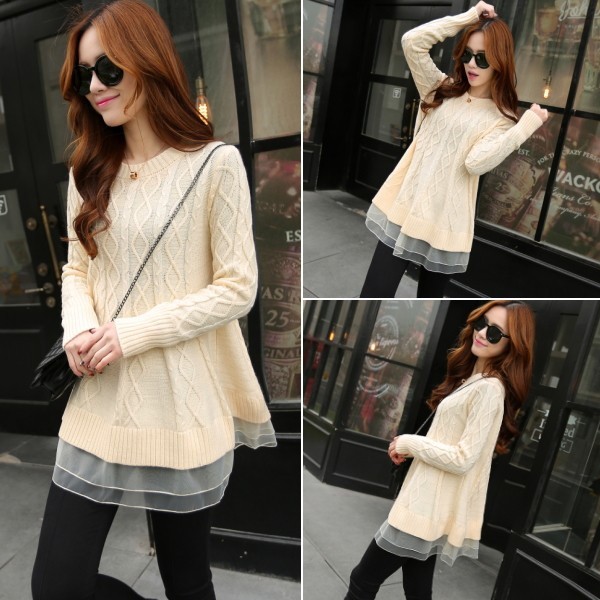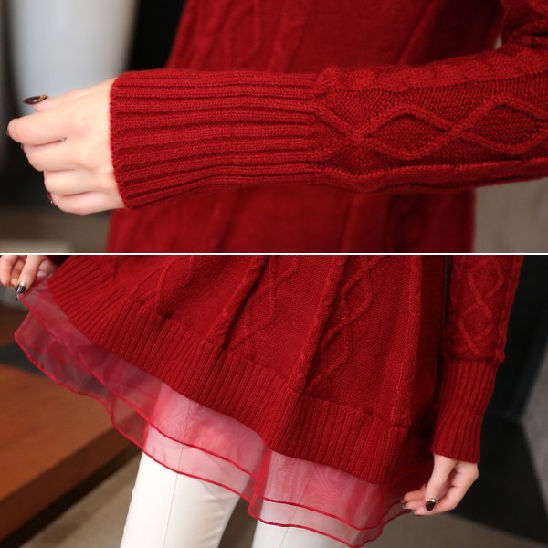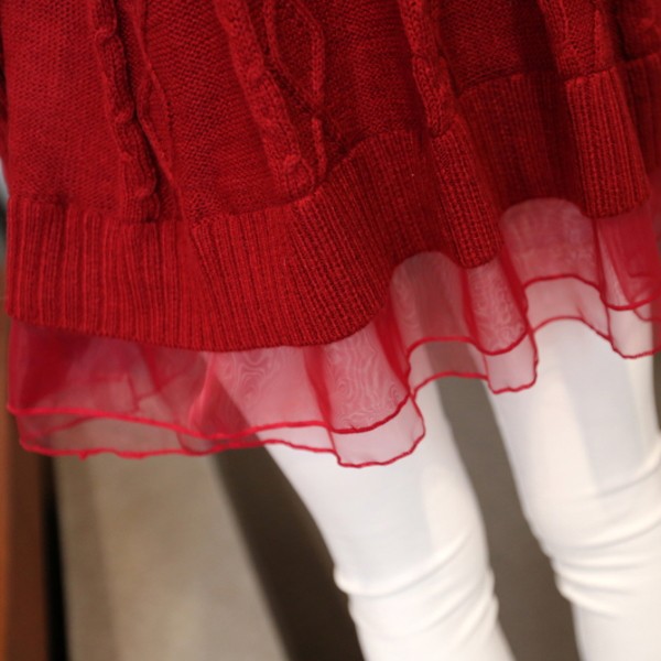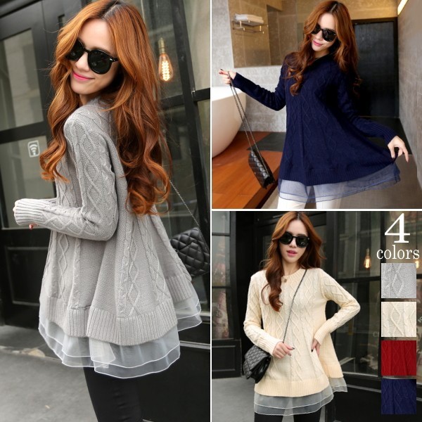 | 商品名 | オーガンジー裾フリル付き ケーブルニット チュニックセーター |