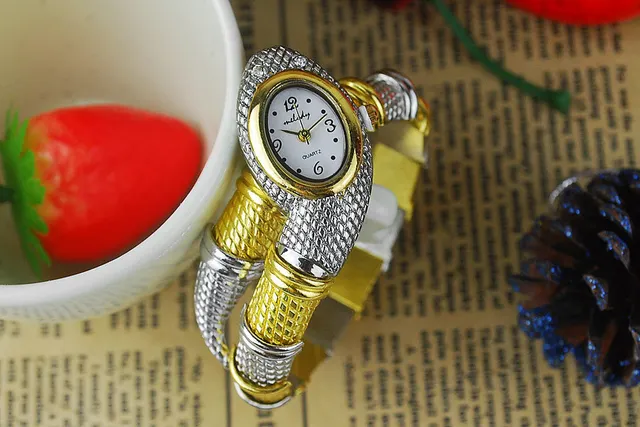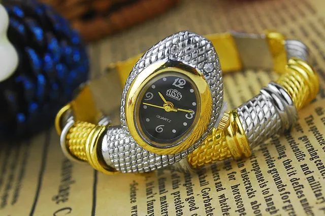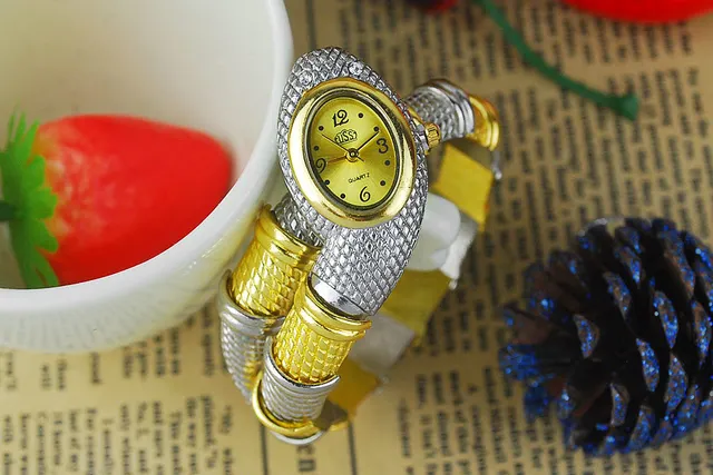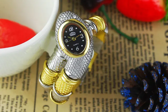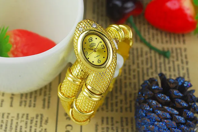 | [해외] CUSSI 시계 여자 석영 손목 럭셔리 골드 숙녀 팔찌 시계 드레스 시계 뱀 모양 팔찌 relogio feminino |