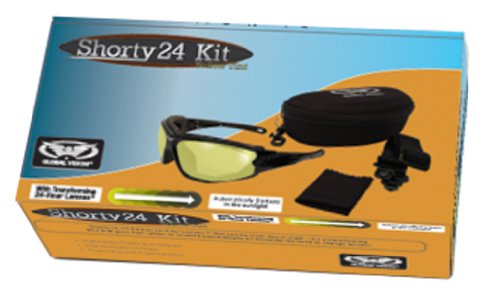 Studio : Global Vision Eyewear Corp Publisher : Global Vision Eyewear Corp Binding : Eyewear Product Description Don't let the name fool you the Shorty 24 is not short on comfort or durability. The shorter temples allow for use under your helmet and the temples can easily be removed and replaced with the included adjustable strap. The lenses transform color as sunlight levels change and the durable case keeps them protected while you are not wearing them. 0