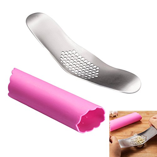 Fu Store Solid Stainless Steel Garlic Press Chopper Perfect Ginger Slicer Crusher Presses with Silicone Peeler