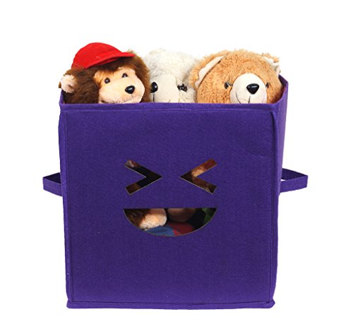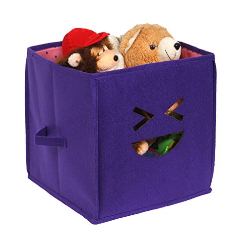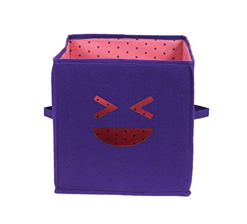 PrettyKrafts Emoticons MultiUtility Storage Box - Wash Laundry Basket - Toy Organizer 34X34X34 Purple & Pink