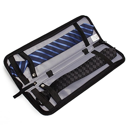 - Small But Ample:The travel tie caddy with 4 elastic straps and zippered closure around hold cravatta or bow ties in place,also storage for cufflinks,tiepins,small scarf ,Jewelry hangings etc.