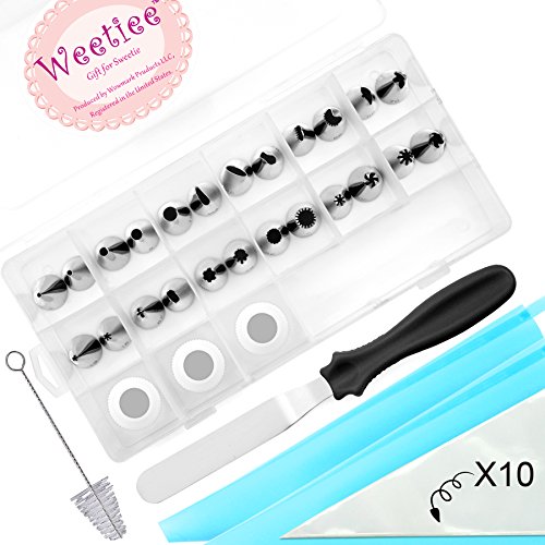 - 100% SATISFACTION GUARANTEE - You can try Weetiee’s tips set completely Risk FREE. This high-quality, durable, corrosion resistant and easy to use piping tips set is backed by a full 100% MONEY BACK lifetime guarantee. If our product isn’t for you, please simply contact us and we’ll make it right. Click the Add to Cart button now. Consider getting TWO - one for you and one for your very best friend.