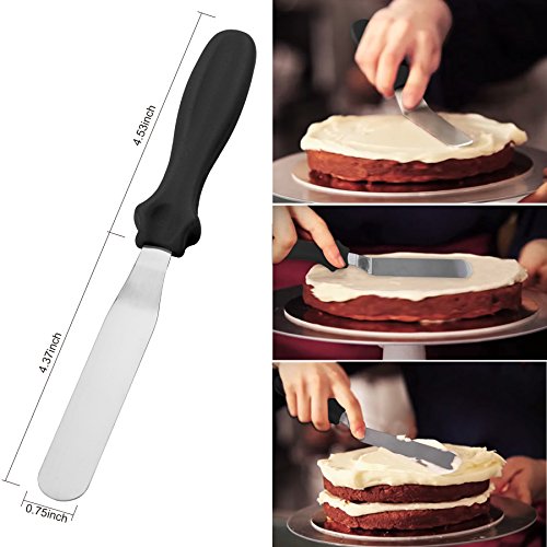 - Icing Spatula - Do you still feel difficult to make layered cakes and spread on a crumb layer evenly and smooth? Come on! You just lack a handy tool! With the angled spatula we offered, you will not only do well in above problems but also efficiently icing mini cupcakes or smoothing the edges where cake tiers meet. Hey, are you ready to wow your family and friends with your hidden skills now?
