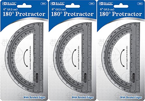 3 Pk, Semicircular 6" Protractor (15 cm) with Beveled Edges