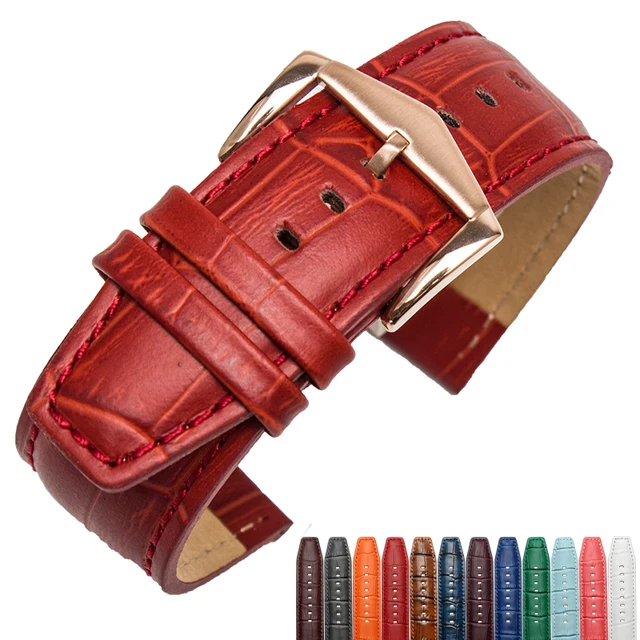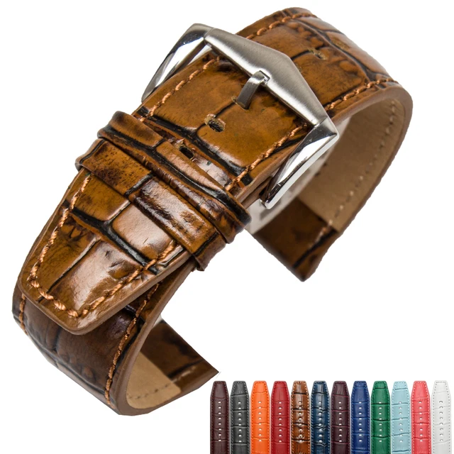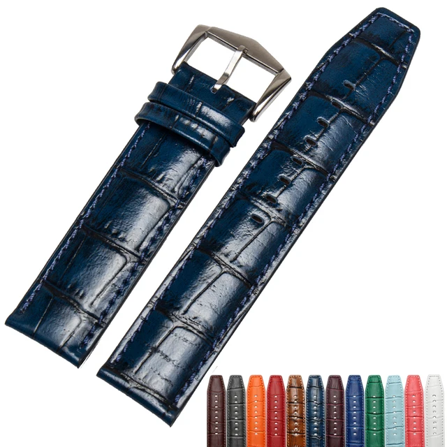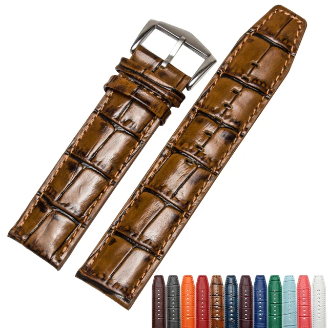 [해외]22 미리메터 정품 가죽 시계 스트랩 고품질의 악어 곡물 가죽 시계 액세서리 손목