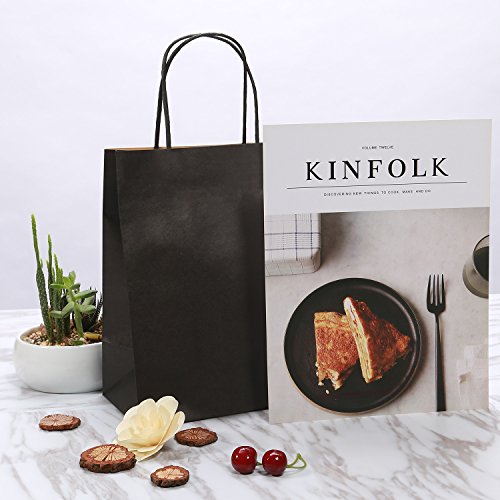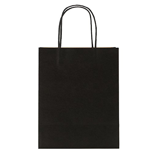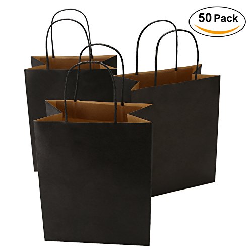 Road 8x4.75x10.5 Inches 50pcs Black Kraft Paper Bags with Handle, Shopping Bag, Merchandise Bag, Party Bag