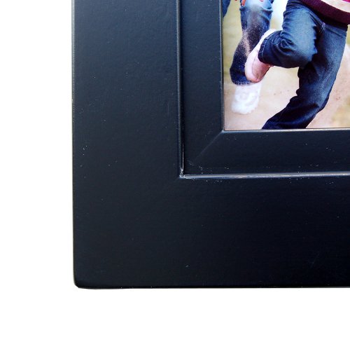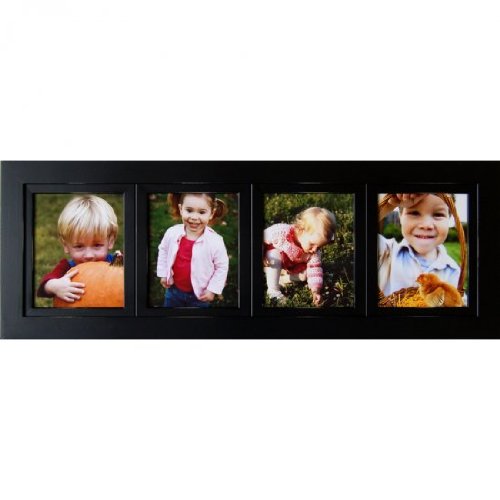 A four-opening collage picture frame is the perfect way to display a four generation grouping of children, parents, grandparents and great-grandparents, and each of our collage frames will last a lifetime. A four opening 5x7 multi-picture frame makes a wonderful housewarming gift or wedding gift as well. Made from hardwood and hand-painted with distressed edges, this black wood frame will be a tasteful addition to your home for years to come. Measuring 12"H x 30"W x .75"D overall with a frame width of 2.75 inches, these frames are a beautiful addition to any decor. Each frame is made in the USA and includes glass, backing and hanging hardware. Can be hung horizontally or vertically.Feature