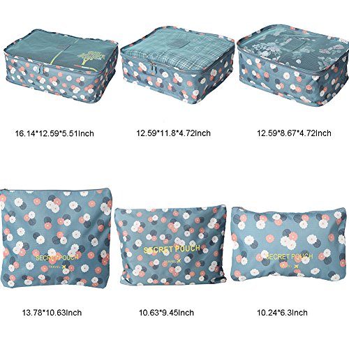 SPACIOUS AND ORGANISED-6pcs packing cubes perfect to store and organize your clothing, makeup and beauty products, cosmetic bottles to pack. Easily make your items orderly and won't be embarrass about checking when you travel by air.