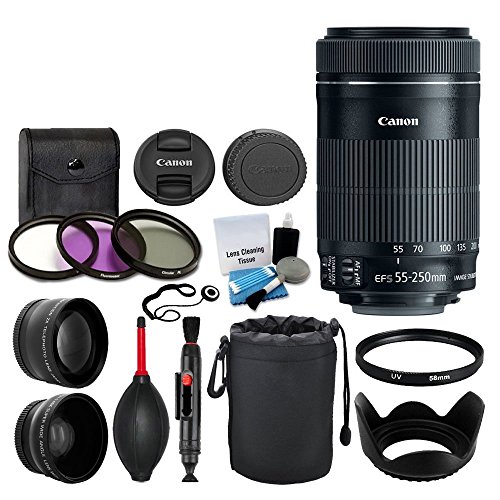 Digitaluniverse Canon EF - S 55250mm f45.6is STM렌즈for Canon SLR카메라,58mm 2x프로패셔널 망원 렌즈,고58mm광각 렌즈 번들w