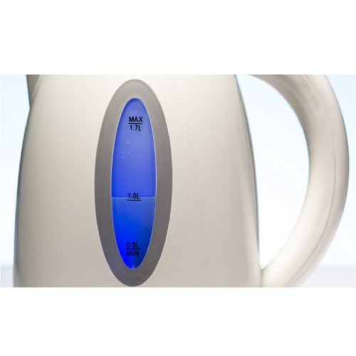 1.7L BPA-Free plastic cordless electric kettle with 120V, 1100-watt power that boils water faster and uses less energy than stovetop kettles
