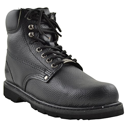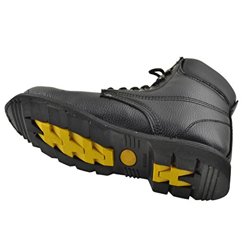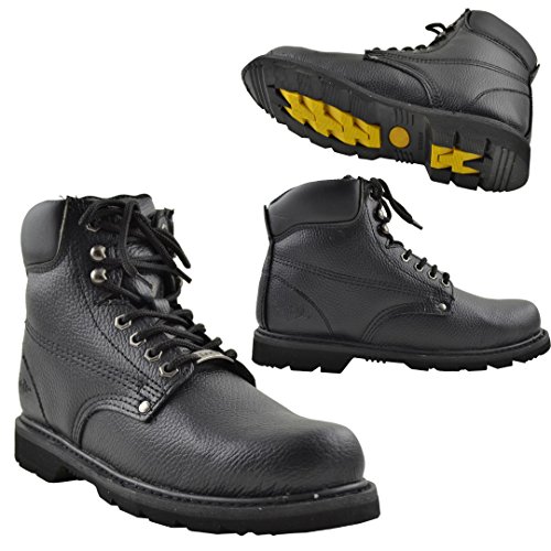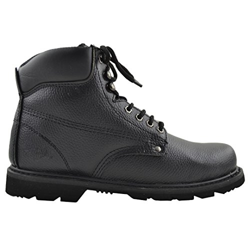 Binding : Apparel Product Description Protect your foot and get through the job with ease in these work boots. Material: Man Made Genuine Leather. Rubber Sole. Cushioned Ankle and Oil Resistant. Boot Length: 12.5" approx. Boot Height: 8" approx. Heel: 1.25" approx. Platform: 0.75" approx. All measurements were taken from Size 10. Avalable in Black US Mens Sizes 6.5-12 0