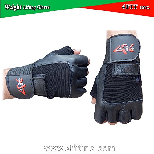 -. Title : 4Fit Leather Weight Lifting Gloves Long Wrist Wrap Padded Strength Training Gym S-XXL (Medium)