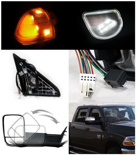 Scitoo For 2010 2011 2012 Dodge Ram Heated Towing Mirrors Power Chrome LED Turn Signal Puddle Light Side View Mirror Pair Set