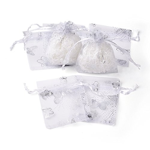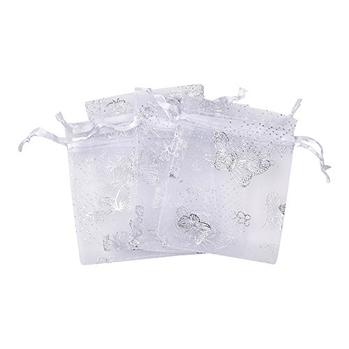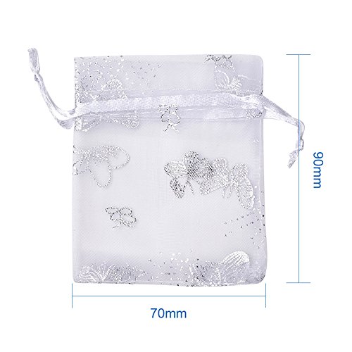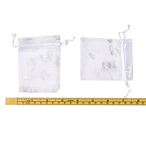 - 100pcs Organza Bags, Drawstring Pouch Favor Bags, Gift Package, Rectangle with Butterfly Pattern, White