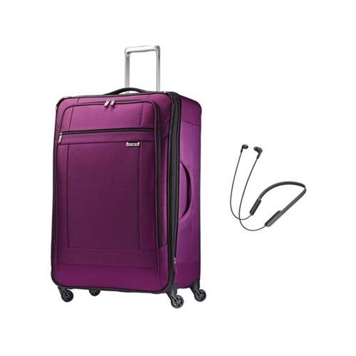 -. Title : Samsonite SoLyte 29" Expandable Spinner Upright Suitcase Luggage (73852-4895) - Purple Magic w/ Bonus Sony Bluetooth Wireless, In-Ear Headphones with NFC (Black)