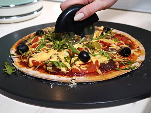 Kenley Black Pizza Stone Set for Baking & Cooking Pizzas & Bread in Oven, Grill or BBQ - Round Stone 15" with Pizza Cutter - Large Flat Ceramic Pan Cooks Pizza Evenly & Gives Crispy Crust