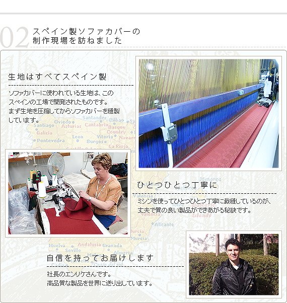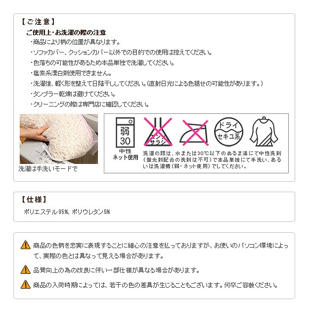 ●商品について:スペイン製の生地を使用したストレッチ素材のソファカバー。中綿入りでふわふわな感触をお楽しみ下さい。