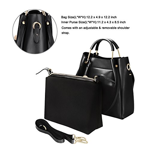 Unique Design--Comes with 3-way handles/straps: Double golden metal with leather trim top handles(Height: 3.7"); Double shoulder strap as tote bag(Length: 26.4"); One removable crossbody strap(Length: 45"-51.2").
