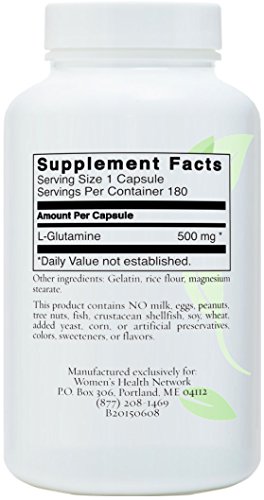 -. Binding : Health and Beauty -. Brand : Women's Health Network -. EAN : 5060311950383 -. Feature : Helps you avoid additional digestive irritation. / Supports healing in your GI tract. / Makes it easier to absorb the nutrients your body needs. / Manufactured in a facility validated by NSF International to meet or exceed all governmental requirements for Good Manufacturing Practices (the FDA's GMP's) / 100% Satisfaction Guarantee through Women's Health Network -. IsAdultProduct : 0 -. Label : Women's Health Network -. LegalDisclaimer : These statements have not been evaluated by the Food and Drug Administration. This product is not intended to diagnose, treat, cure, or prevent any disease. -. Manufacturer : Women's Health Network -. MPN : LG180 -. PackageQuantity : 1 -. PartNumber : LG180 -. ProductGroup : Health and Beauty -. ProductTypeName : HEALTH_PERSONAL_CARE -. Publisher : Women's Health Network -. Studio : Women's Health Network -. Title : L-Glutamine Capsules by Women's Health Network