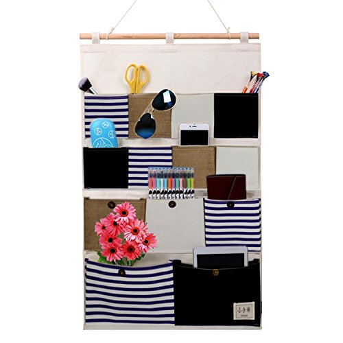 Linen/Cotton Fabric Wall Door Closet Hanging Storage Bag 13 Pockets hanging shelves (Mix)