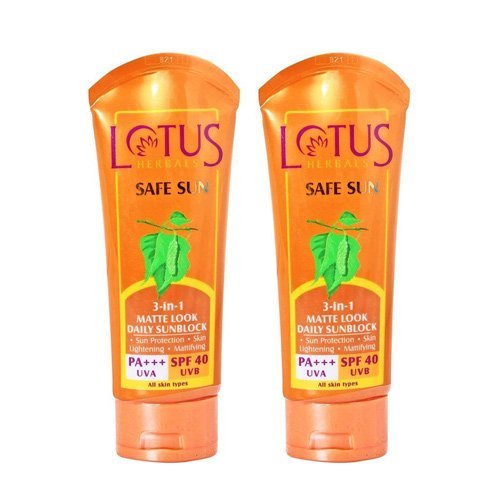 Pack of 2 - Lotus Herbals Safe Sun 3 in 1 Matte Look Daily Sunblock - SPF 40 Pa+++(100 G)