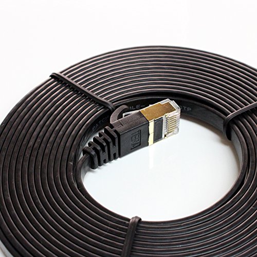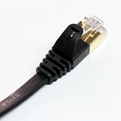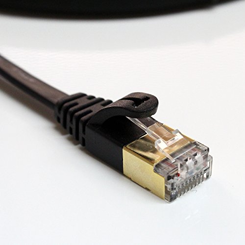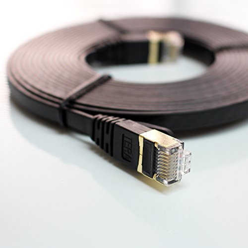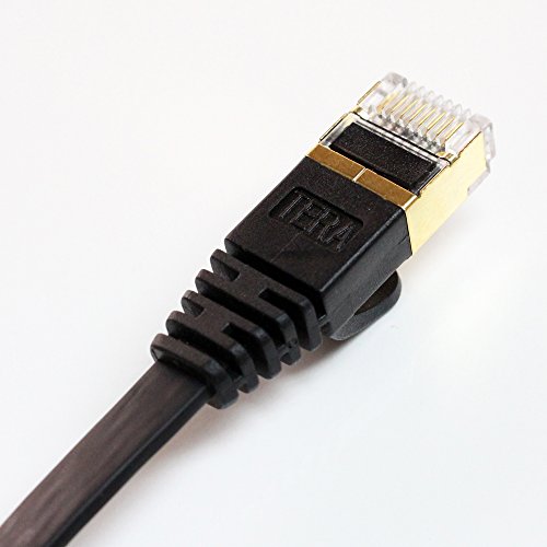 Tera Grand - CAT7 10 Gigabit Ethernet Ultra Flat Patch Cable for Modem Router LAN Network Playstation Xbox - Built with Gold Plated & Shielded RJ45 Connectors, 12 Feet Black