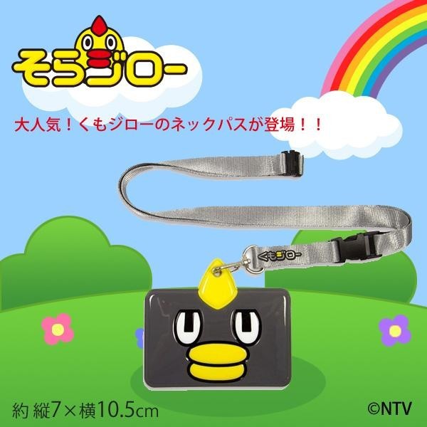 くもジローのお顔のネックパス♪お顔の裏面に社員証や定期券が入れられるよ。ストラップ部分には、「安全パーツ」付き。くもジローのネックパスはエグゼクティブなあなたにピッタリ! |