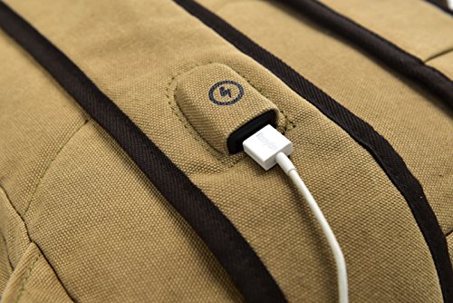 -. Feature : ★100-Percent Pure Cotton Thick Canvas Backpack With Durable Metal Fastenings;Garment Washed For Vintage Look And Enhances Soft Hand Feel / ★This High Density Canvas Backpack Features A Classic Shape With Several Pockets For Storage And Organization; Ample Interior Room Accommodates A 15 Inch Laptop As Well As Holding A Variety Of Other Items / ★This Rucksack Has A Roomy Main Compartment,1 laptop compartments, 2 Large front Pockets, 1 Internal Security Zippered Pocket For Valuable Items And Two Side Pockets With Button Closure / ★INSTRUCTIONS OF USB CHARGING:Check the small sealed pocket in the main compartment.It contains a built-in usb cable,you need to link your power bank to this cable in order to charge your phone with the usb port at shoulder strap. / ★We Promise you 100% SATISFACTION. If you are not satisfied with the canvas backpack, just return it within 30 days for a full refund. No questions asked, no hassle.