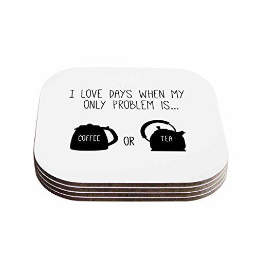 -. Title : KessインハウスBusy Bree "コーヒーまたは紅茶"ブラックTypography Coasters ( Set of 4 )、4 x 4インチ、マルチカラー