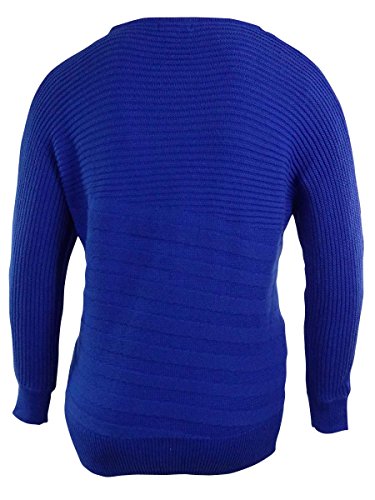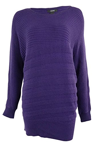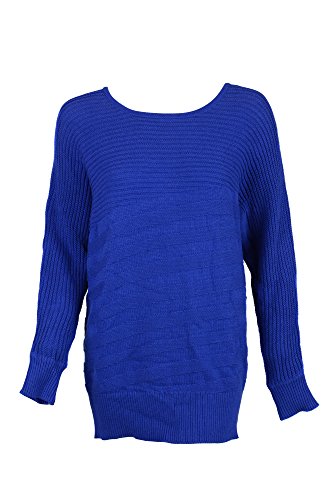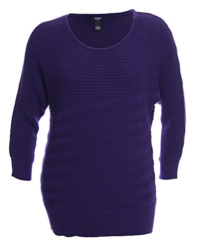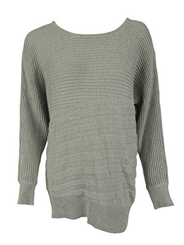 Sweater features no lining, bateau neckline, rib knit sweater fabric, dolman sleeves, and pullover style.