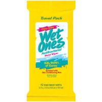 15 antibacterial cleansing wipes for hands and face in a resealable travel size pack